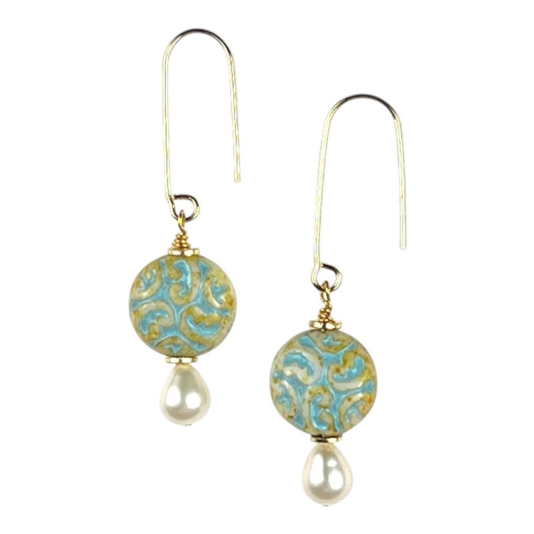 Earrings - Chez Glass Aqua Beads and Freshwater Pearls