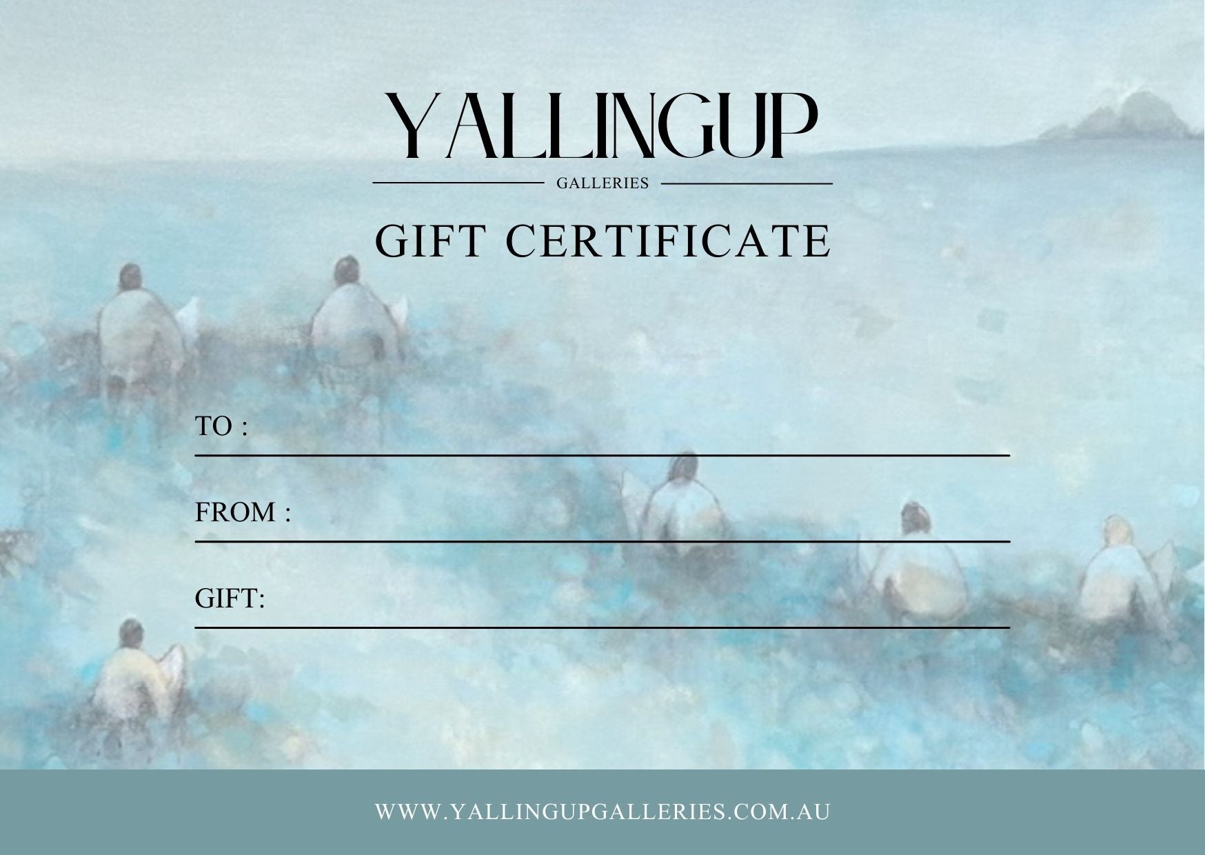 Purchasing a Yallingup Galleries gift certificate is easy! Simply visit our gallery in person or contact us via phone or email to arrange your gift certificate for any desired amount. We'll provide you with a beautifully designed certificate ready to be presented to your loved one.