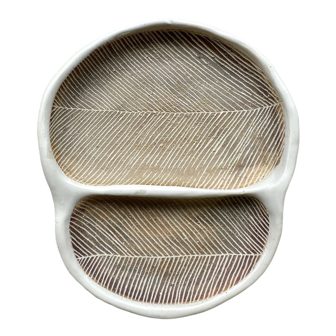 Internally the pods have 3 coats of unique natural colour hand painted and then carved carefully using the sgraffito method. Within each set there are nuanced variations, making each piece unique.