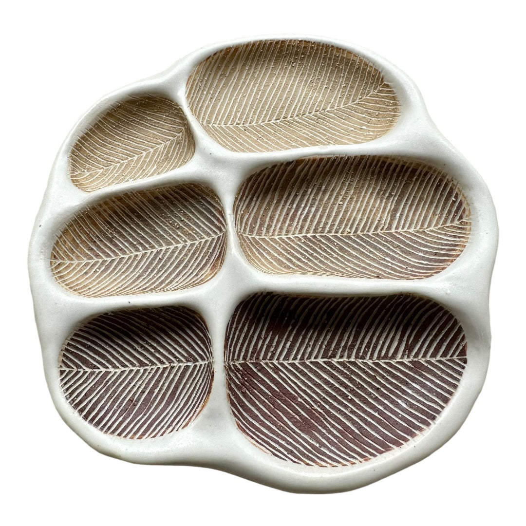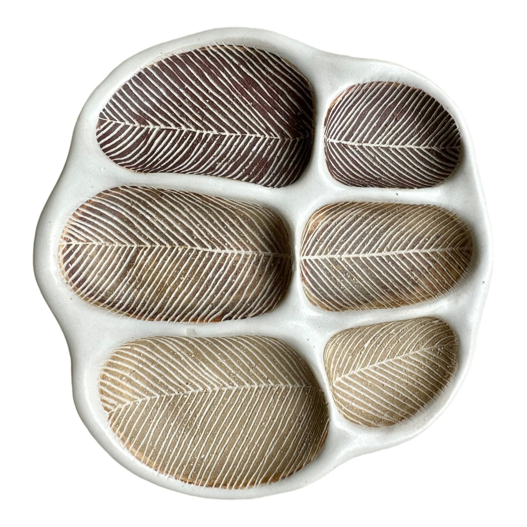 Hand Built with a beautiful soft clay, the pods are shaped into organic forms to resemble a natural found object. Fired to high temperatures for durability, and sealed with Liquid Quartz Sealer for safe use as food serve ware if desired.