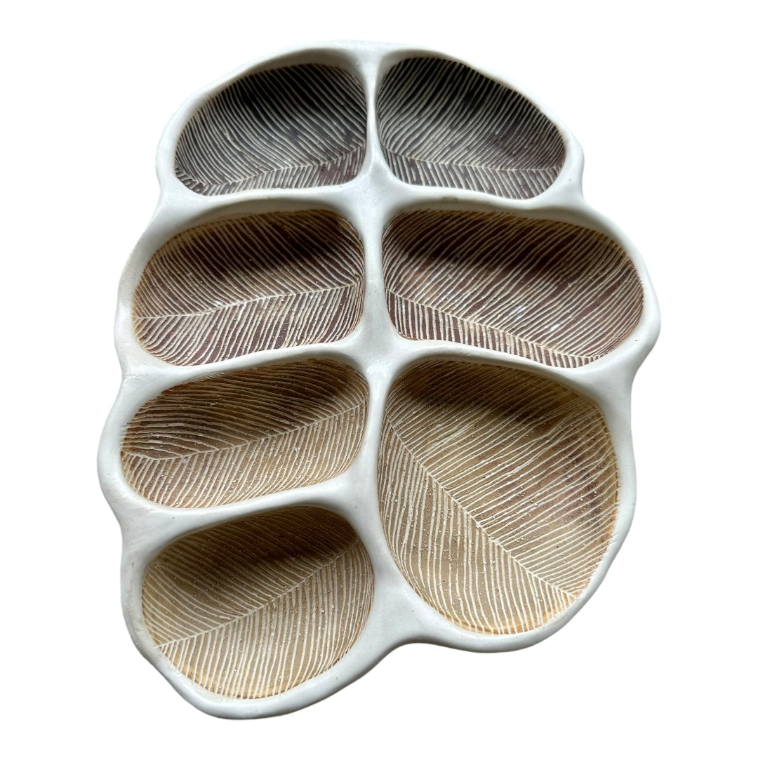 Internally the pods have 3 coats of unique natural colour hand painted and then carved carefully using the sgraffito method. Within each set there are nuanced variations, making each piece unique.
