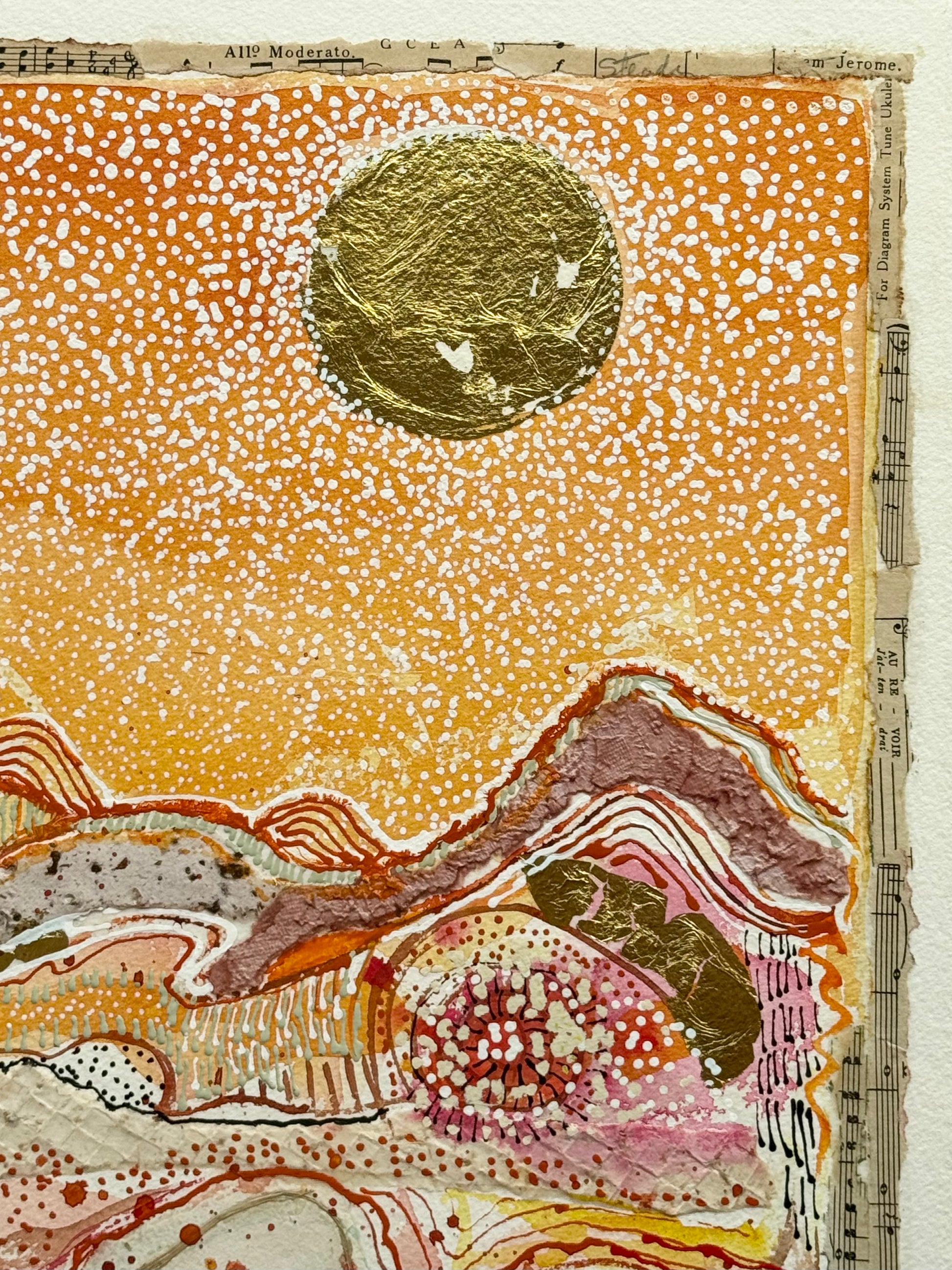 Watercolour, acrylic, gold leaf and collage on .640gm paper