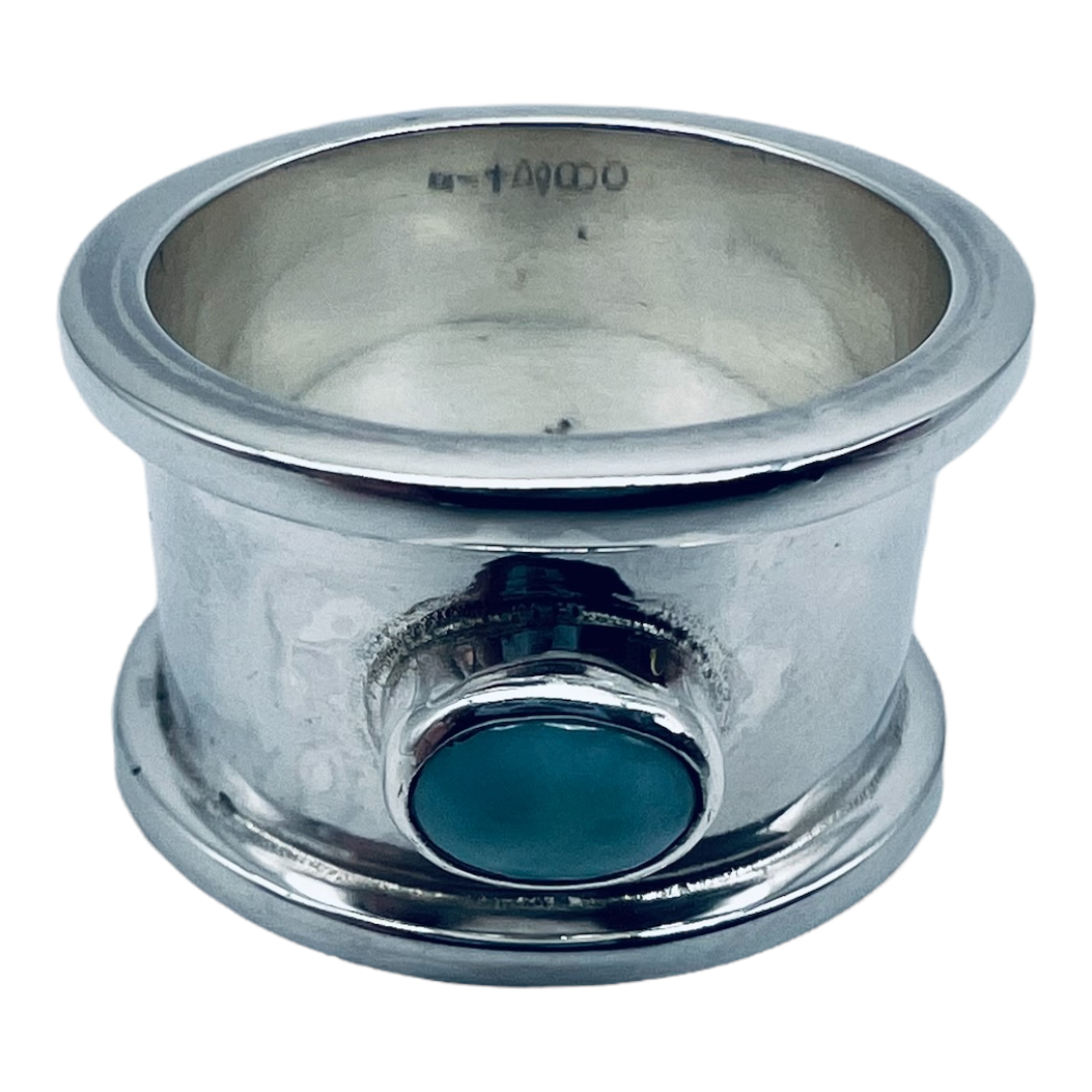925 Sterling Silver with LarimarA subtly hammered artisan made ring, with a contrasting border that follows the line of the band.