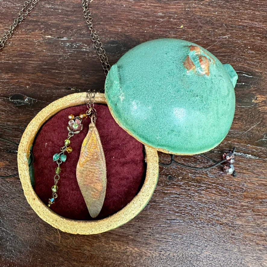 Each displayed and stored in a hand crafted ceramic case.